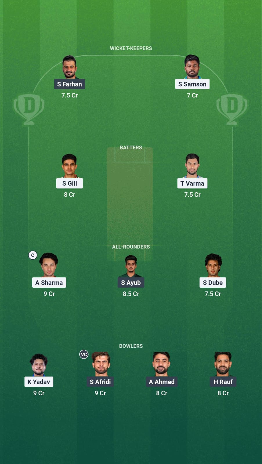 Abhishek Sharma has been in a purple patch in this tournament and is the top choice. We are also selecting Shivam Dube and Saim Ayub, as they have bowled well in this tournament.