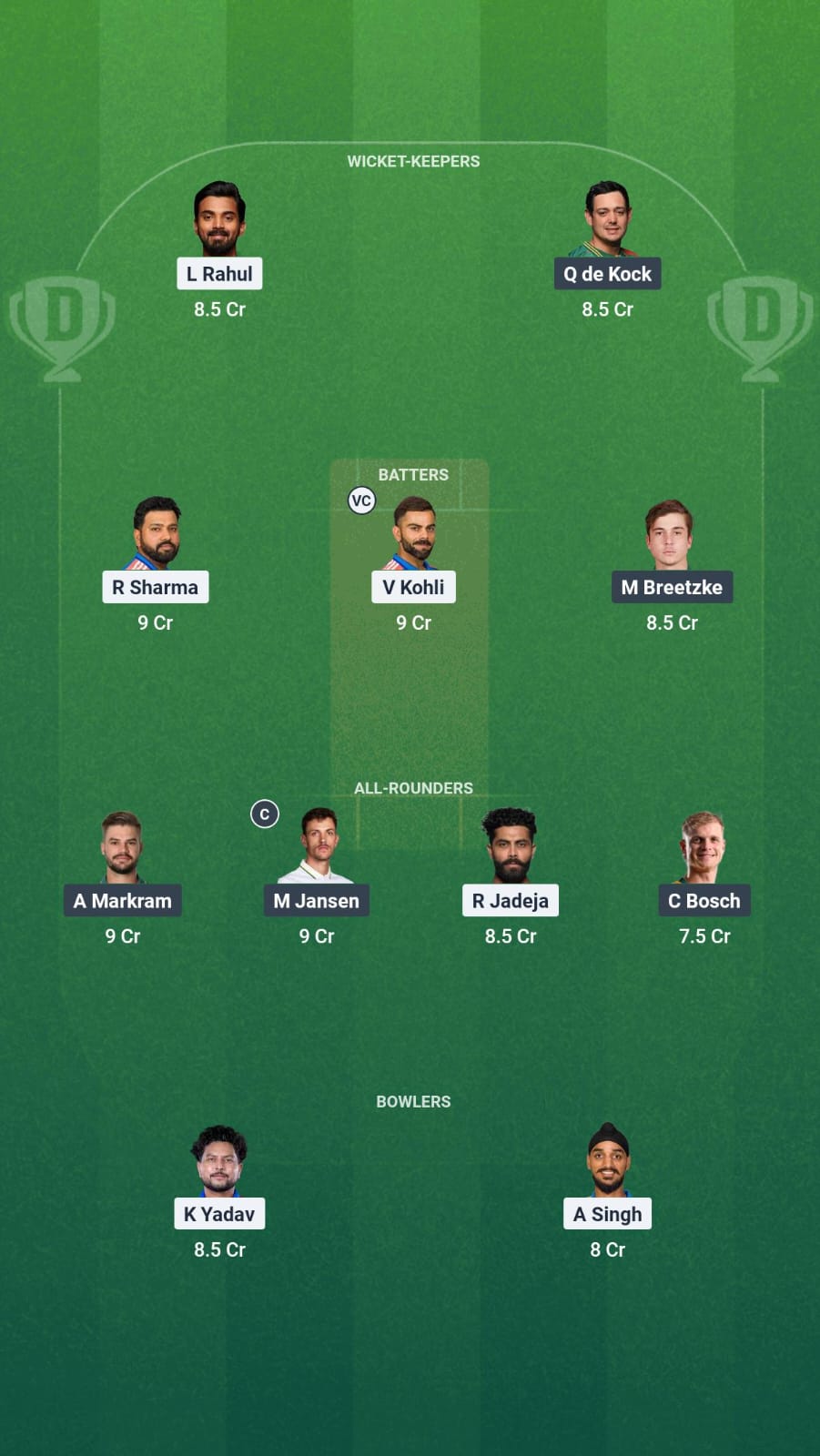 Virat Kohli scored a brilliant century on Sunday and is our top pick. We are also bringing in Rohit Sharma and Matthew Breetzke, as they both batted well.