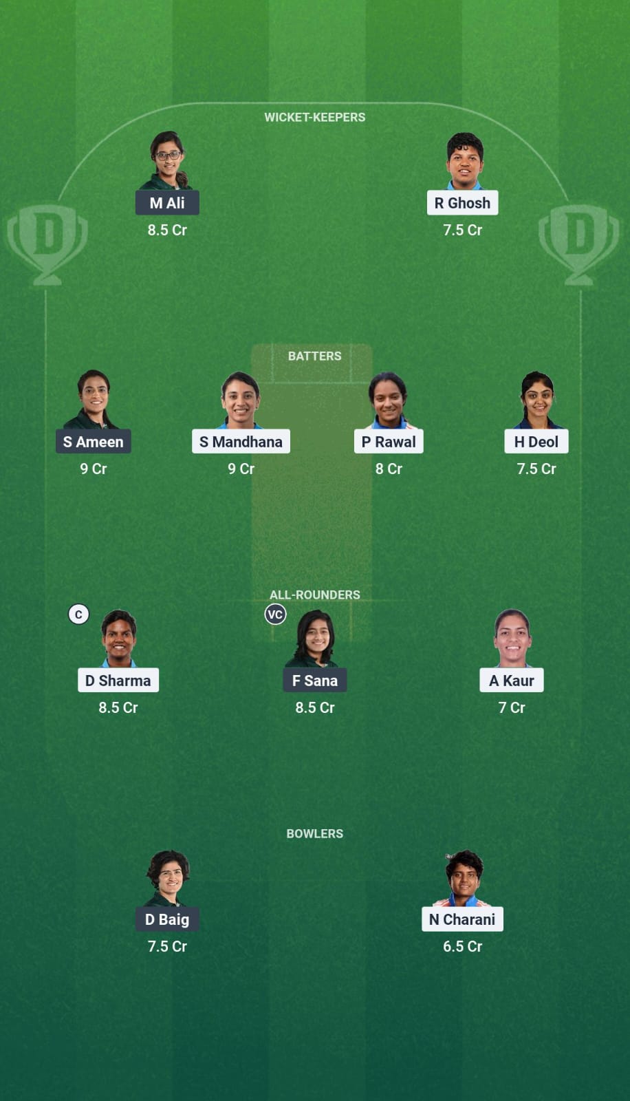 Deepti Sharma and Amanjot Kaur were both in excellent form in the previous match. We are also selecting Fatima Sana for this game.