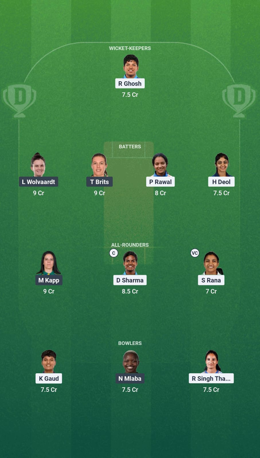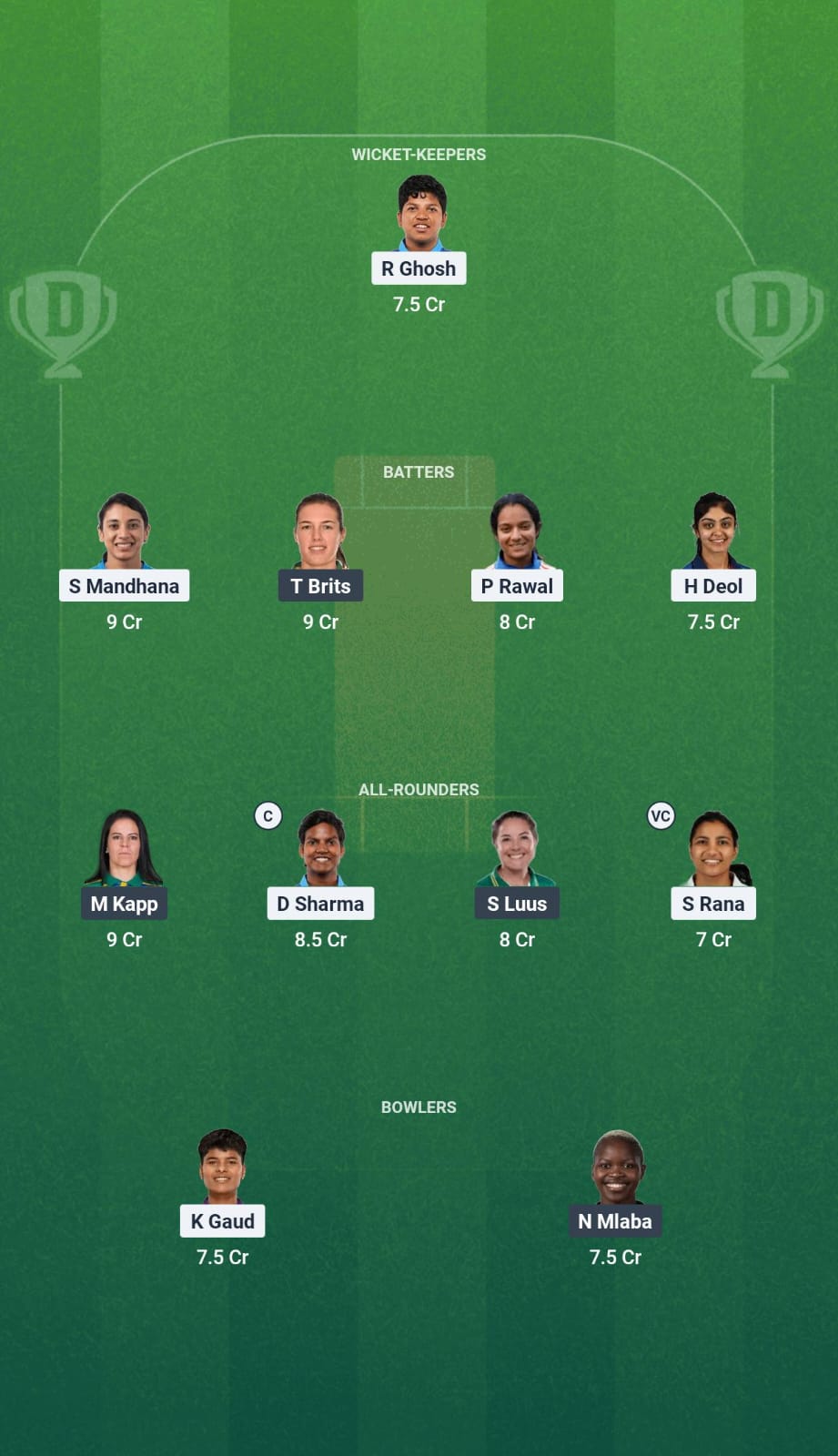 Deepti Sharma and Sneh Rana have been the best players for India in this and are the top picks. We are also bringing in Sune Luus and Marizanne Kapp.