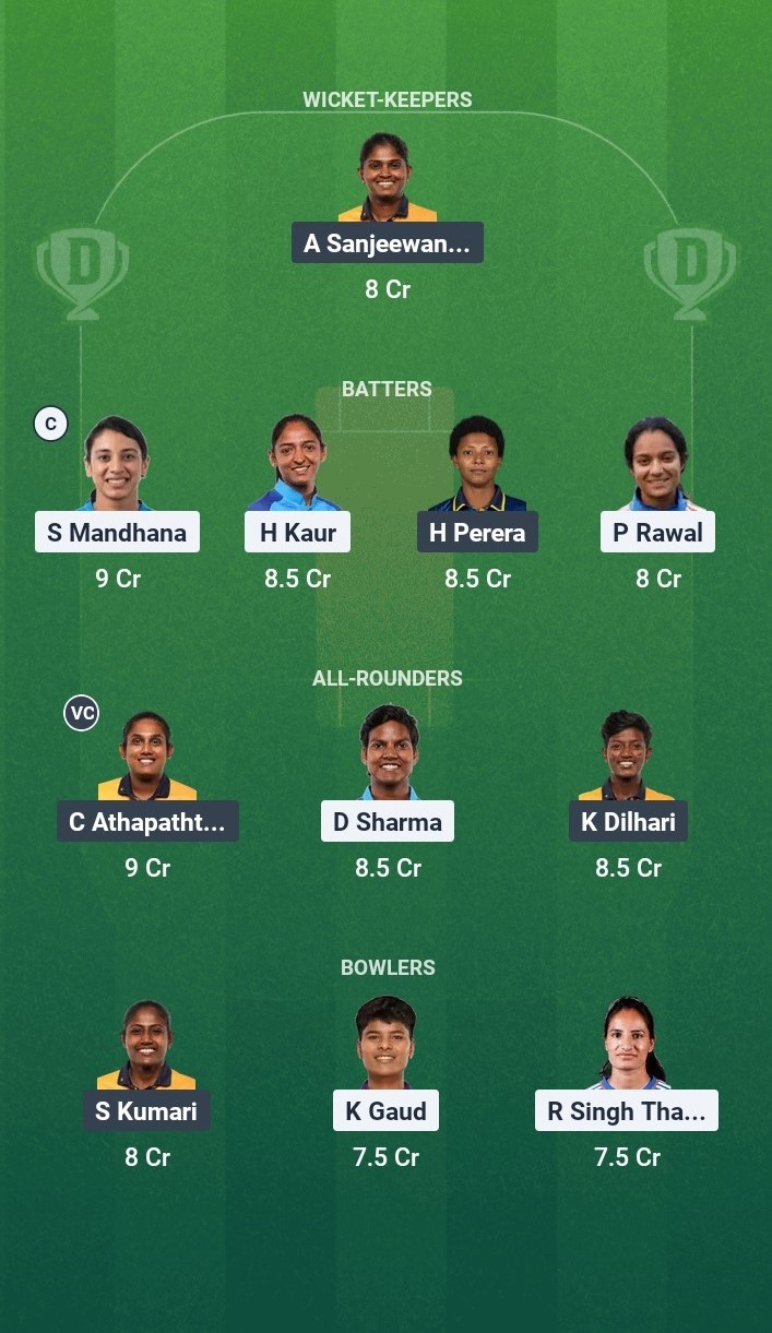 There are some good all-rounder alternatives available for this contest, such as Chamari Athapaththu, Deepali Sharma, Dewmi Vihanga, and Radha Yadav.