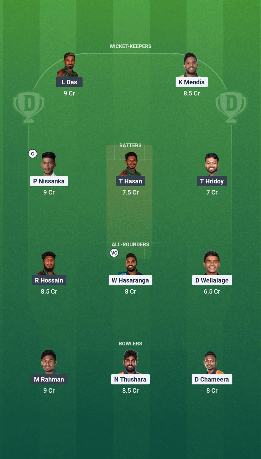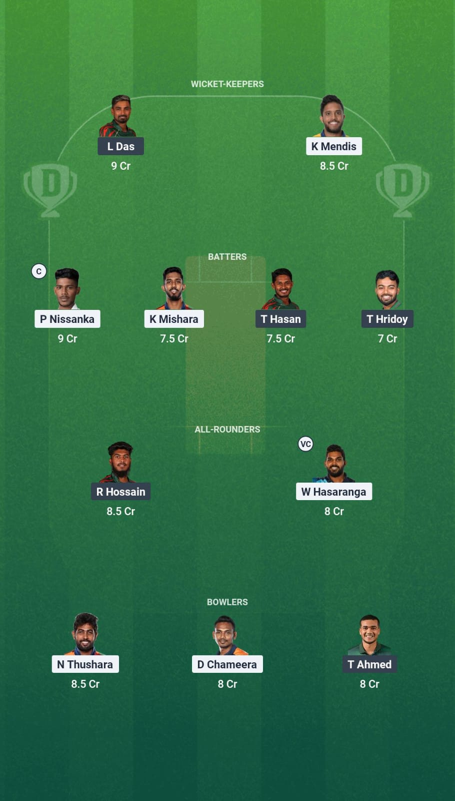 Nuwan Thushara and Dushmantha Chameera have been excellent with the new ball, and we are selecting them for our team. Mustafizur Rahman also comes in as a specialist seamer.