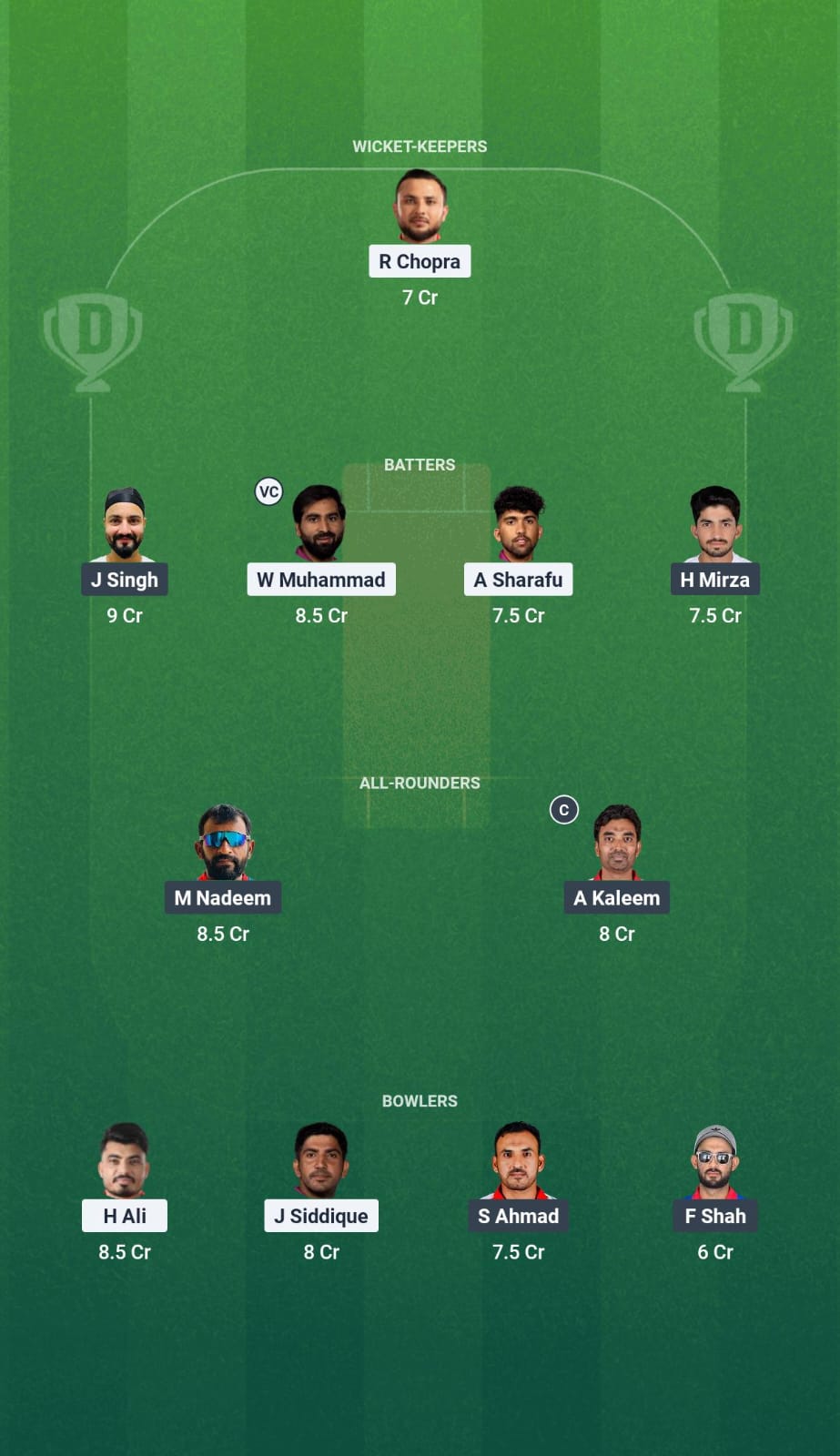 Muhammad Waseem and Jatinder Singh are the obvious choices here as they are the most experienced batsmen for their respective teams. We are also going with Alishan Sharafu and Hammad Mirza.