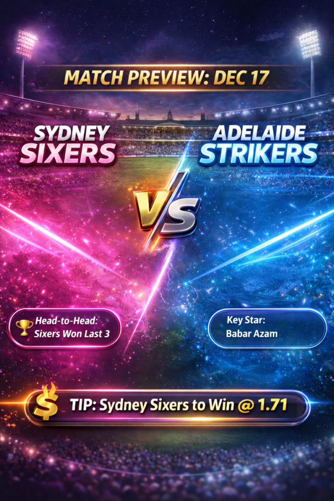 The Sydney Sixers enter this match with superior squad depth, a dominant head-to-head record, and the advantage of playing at home. The addition of elite talent like Babar Azam only widens the gap between the two sides. Adelaide's over-reliance on a few key players makes them vulnerable against a well-drilled Sixers unit.