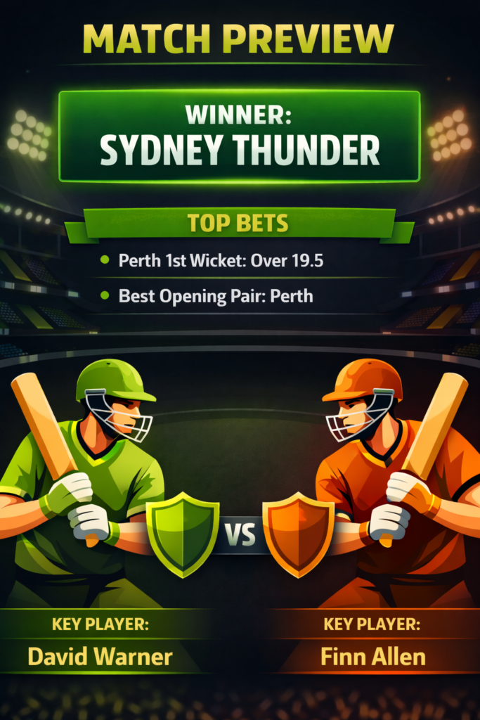 The Sydney Thunder offer excellent value as underdogs here. They will look to land early blows against a Scorchers side that has looked shaky. With a spin attack suited to this surface and a batting lineup capable of big scores, the Thunder have all the tools required to secure victory.