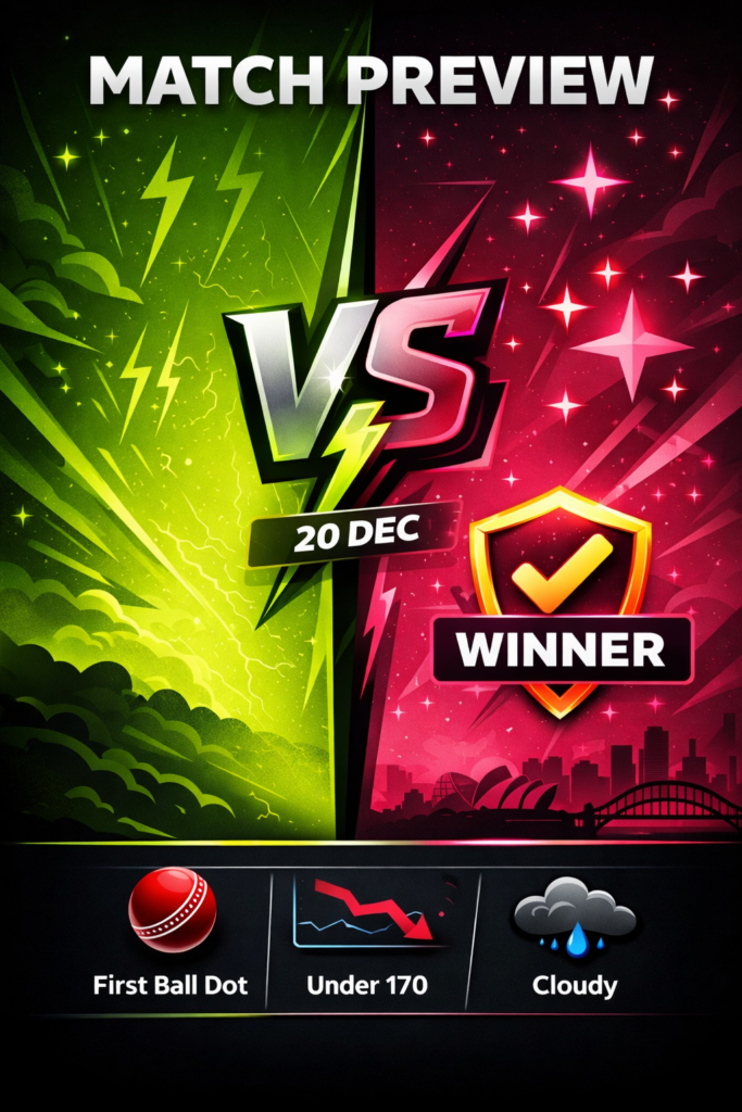 The Sydney Sixers enter this "Sydney Smash" looking to reinforce their dominance over their cross-town rivals. They have been rampant in recent completed derbies, and their squad depth—bolstered by major international signings—looks far superior on paper. Expect the Sixers to capitalize on the Thunder's early-season inconsistencies.