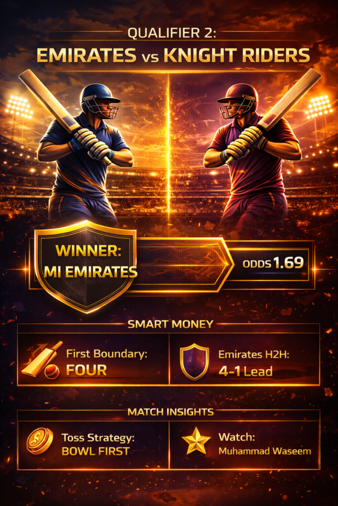 While the Abu Dhabi Knight Riders have momentum from their Eliminator win, consistency is key in tournaments. MI Emirates have been the superior side all season, finishing with nearly double the wins of their opponents in the league stage. Furthermore, their 4-1 head-to-head dominance—including two wins this season—suggests they have the tactical measure of the Knight Riders.