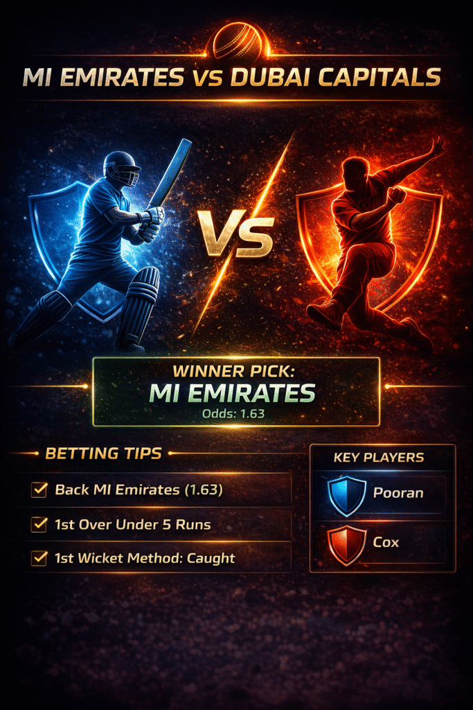 Both sides are entering this clash in peak form—MI Emirates on a four-match winning streak and Dubai Capitals with three wins on the trot. While the Capitals have statistically better bowlers in Salamkheil and Rahman, the overall team balance favors the Emirates.