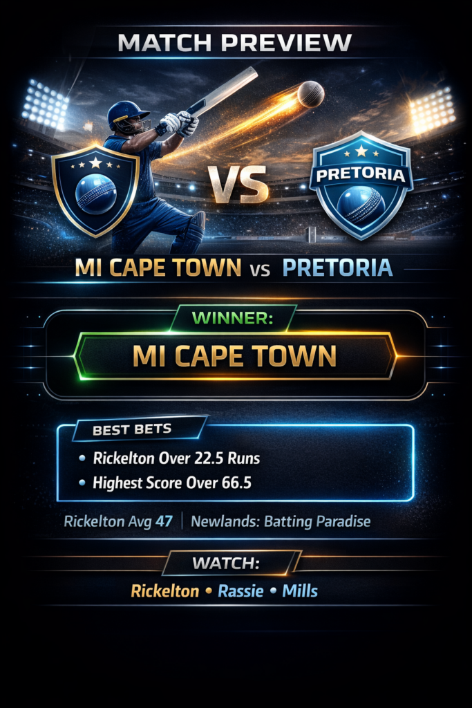 While both teams are hunting for their first win, MI Cape Town holds the edge. Their batting lineup is in superior form compared to Pretoria’s misfiring unit. Furthermore, Cape Town possesses a more balanced bowling attack suited to home conditions. Pretoria’s lack of wickets from their key bowlers is a major red flag.