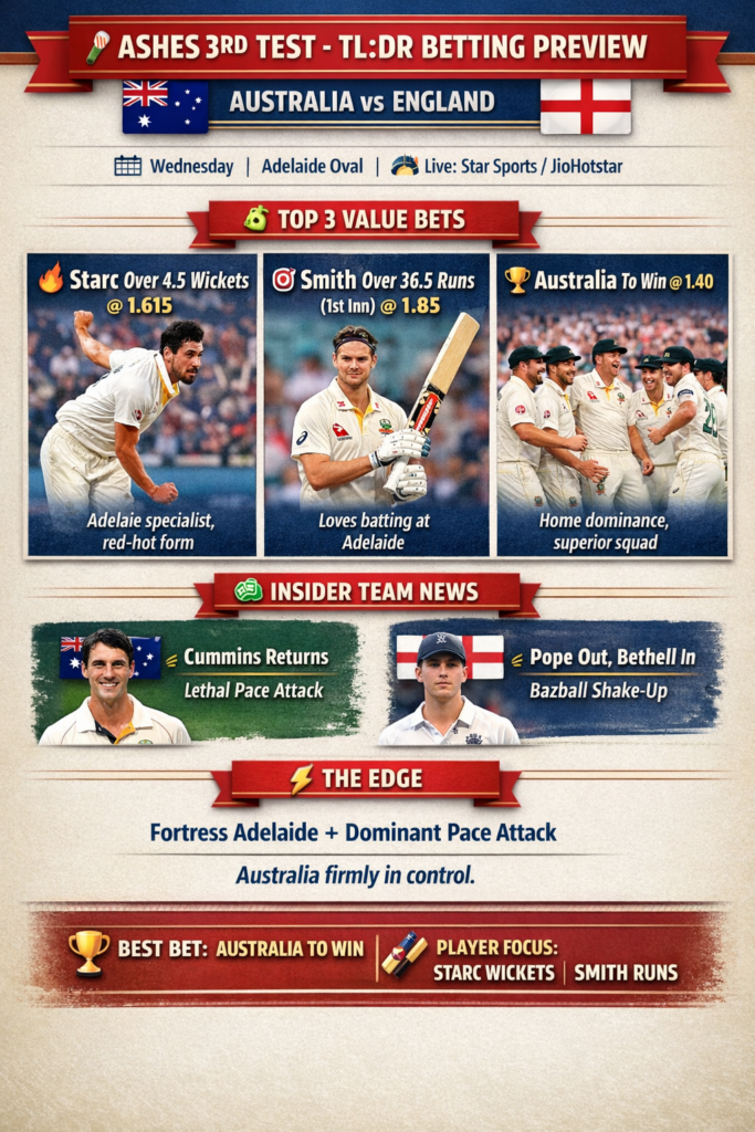 The hosts have been clinical, winning both opening Tests comfortably. They are playing like a team destined to retain the urn. The major boost for Australia is the return of captain Pat Cummins, who is set to partner with the in-form Mitchell Starc.